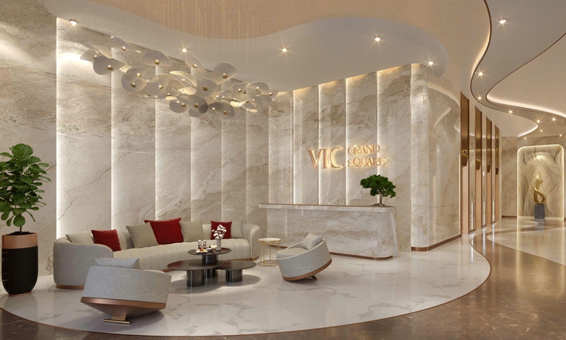 | Sảnh chờ thang máy cao cấp tại căn hộ VIC Grand Square tiêu chuẩn chuyên gia. |