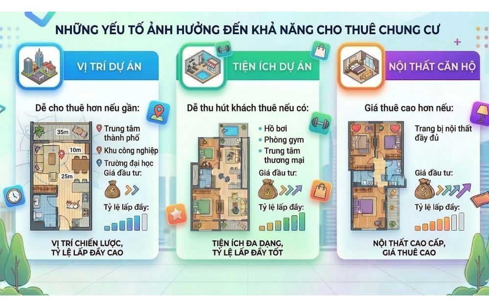 Ngoài loại căn hộ, nhiều yếu tố khác cũng ảnh hưởng đến khả năng cho thuê căn hộ.
