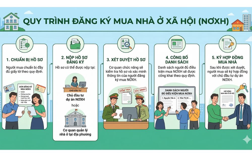 Bài viết dưới đây sẽ giúp bạn hiểu rõ hồ sơ mua NƠXH gồm những gì, quy trình đăng ký và những lưu ý quan trọng theo quy định mới nhất hiện nay.